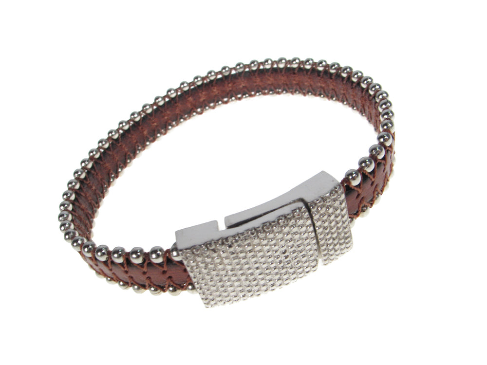 100% genuine leather with magnetic pewter base clasp electroplated in rhodium