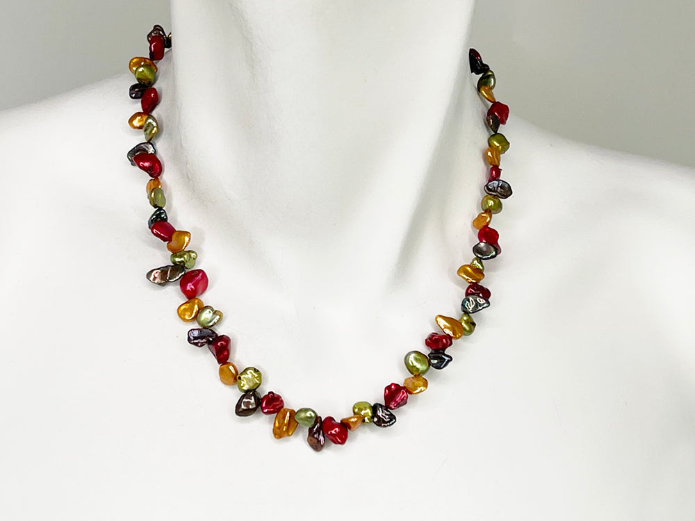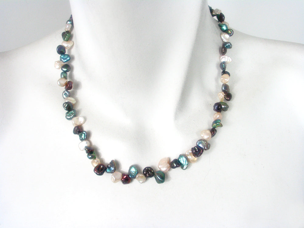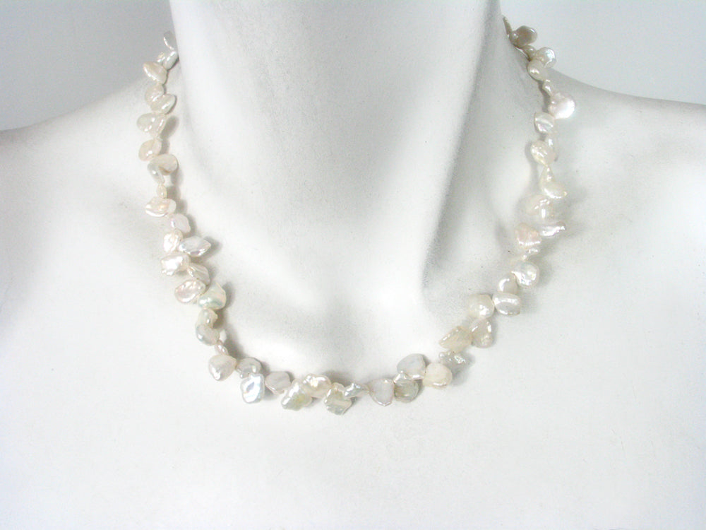 • This Keshi pearl necklace is crafted with care, featuring lustrous keshi pearls and a sterling extender chain with a lobster clasp for an adjustable, secure fit. An elegant accessory for any ensemble, this necklace adds a touch of sophistication and glamour.